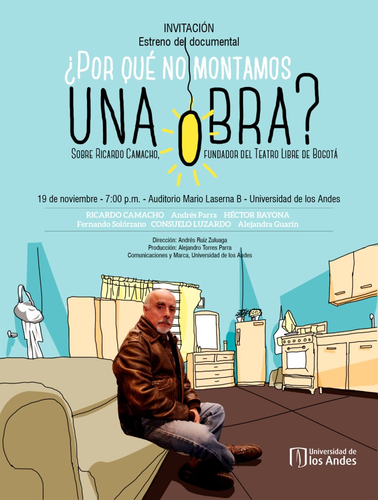 Recorrido por el trabajo como director de Ricardo Camacho, fundador del Teatro Libre, formador y guía de actores como Andrés Parra, Laura García, Héctor Bayona o Fernando Solórzano; y director de cerca de cien obras. Soñó con ser futbolista y no le interesó actuar ni escribir. Termina una obra, empieza otra y tiene lista la siguiente. Documental. Dirección: Andrés Ruiz Zuluaga.